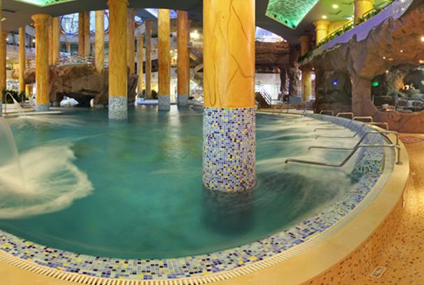 En el Balneario exterior podrá disfrutar de la piscina central con jets, cuellos cisne y chorros cervicales, junto a cascadas de agua al aire libre. Puede acceder a zonas más individuales con jets y burbujas de aire con efecto relajante y de descanso.
