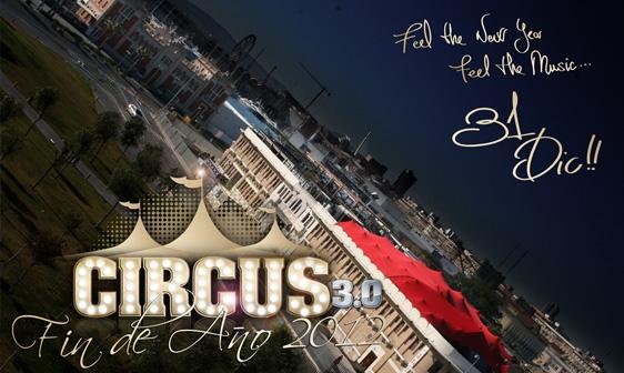 Circus es el festival que se hace en el edificio docks en el Puerto de Valencia en la discoteca Las Animas del Puerto de Valencia. Esta fiesta es lo mas exclusivo que puedes disfrutar en la capital de la Comunidad Valenciana. En Cabina la musica con los dj's Kurd Maverick, Mauri Mora y Jekey. Además puedes contratar la cena de Nochevieja por tan solo 35€ en la misma discoteca de Las Animas. Para completar la entrada de año a la perfección y no coger el coche al tomar unas copas, puedes contratar alojamiento en una habitación doble por 35€ por persona Direccion: Calle del Doctor Marcos Sopena S/N, Playa las arenas, Paseo Neptuno, Valencia GPS: 39.46277,-0.32504
